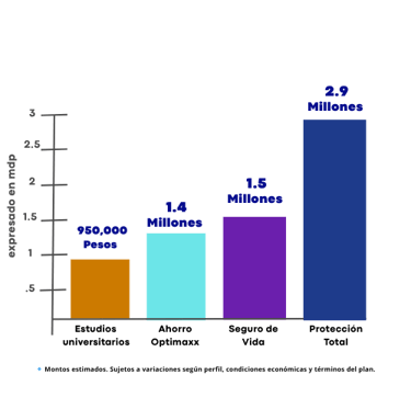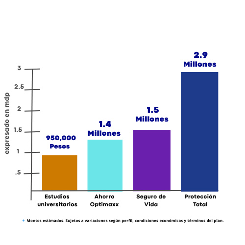 Con OptiMaxx Protección te cuidamos justo como lo necesitas: eliges cuánto y por cuánto tiempo quieres estar protegido. Asegúrate hoy con opción de renovar hasta los 99 años.